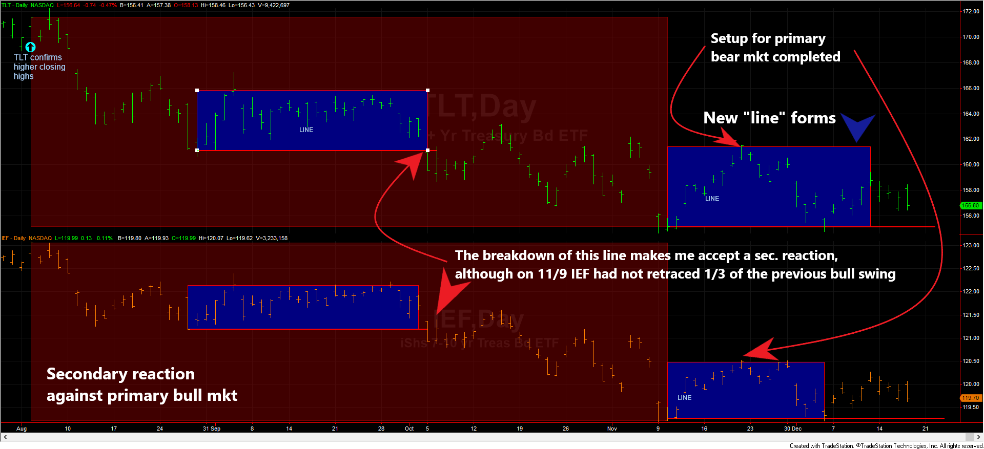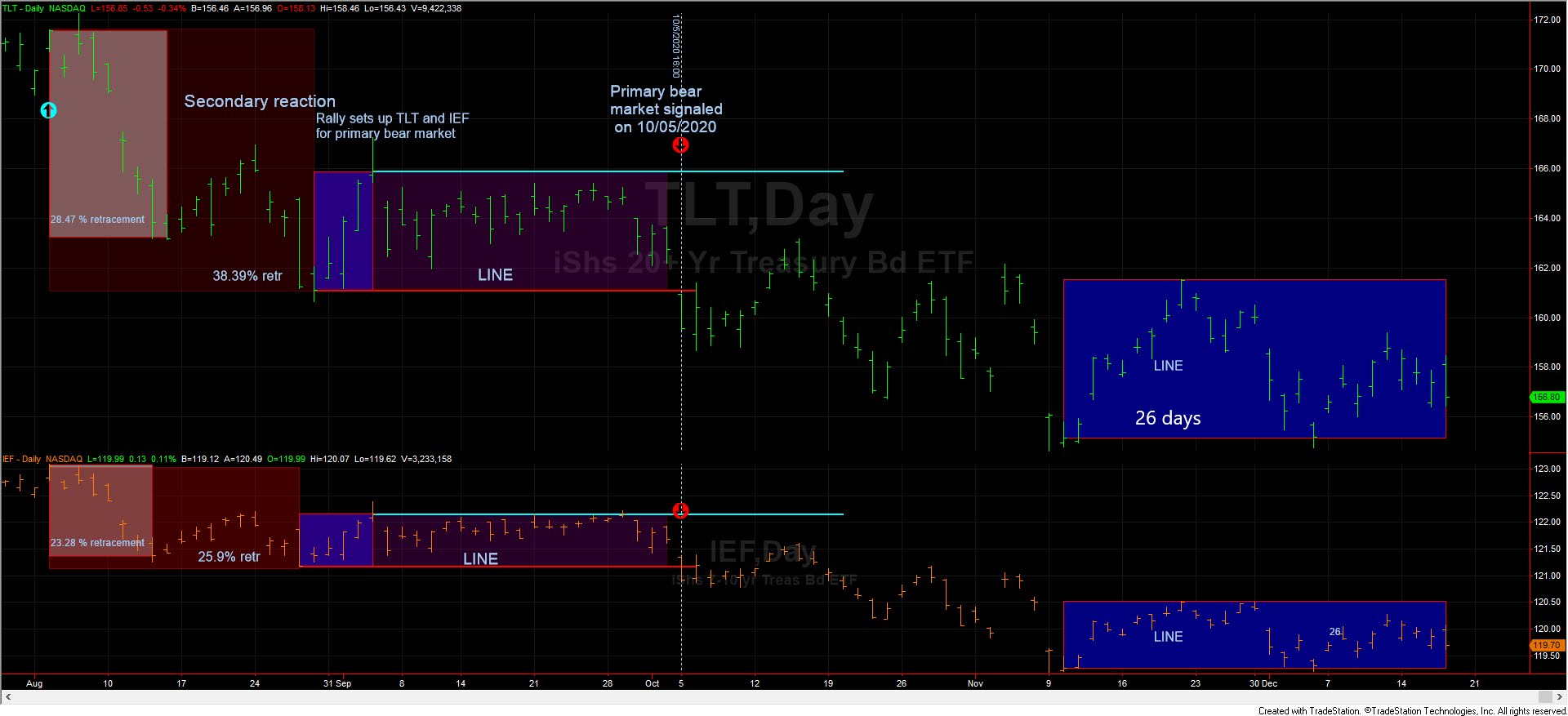 b) It set up TLT and IEF for a primary bear market signal.