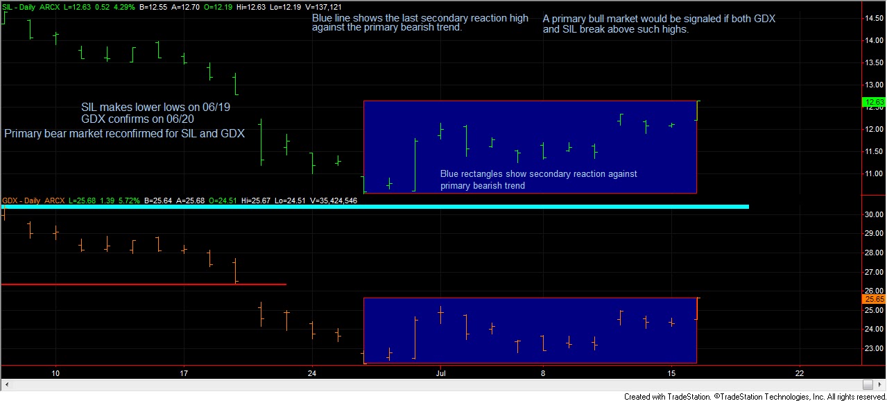 The secondary trend for GDX and SIL is bullish, as explained here.
