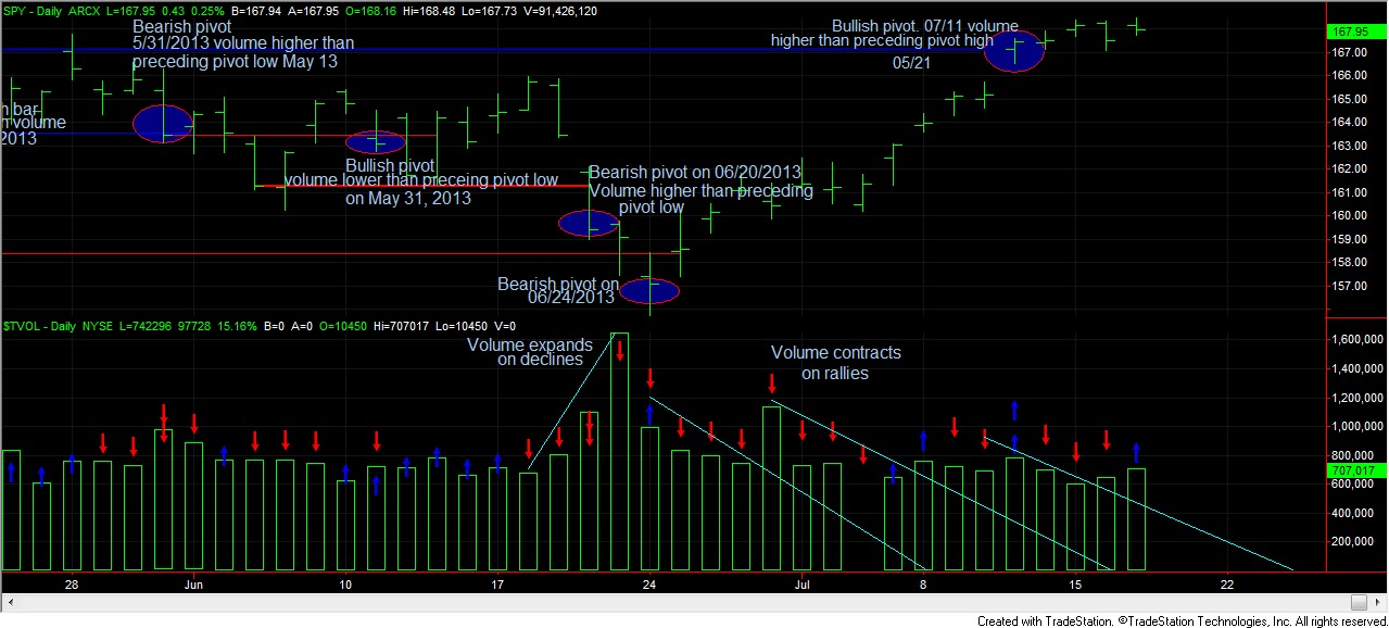 Today’s volume was higher than yesterday’s, which is bullish, as higher prices were supported by expanding volume. However, the overall pattern of volume remains bearish as:
