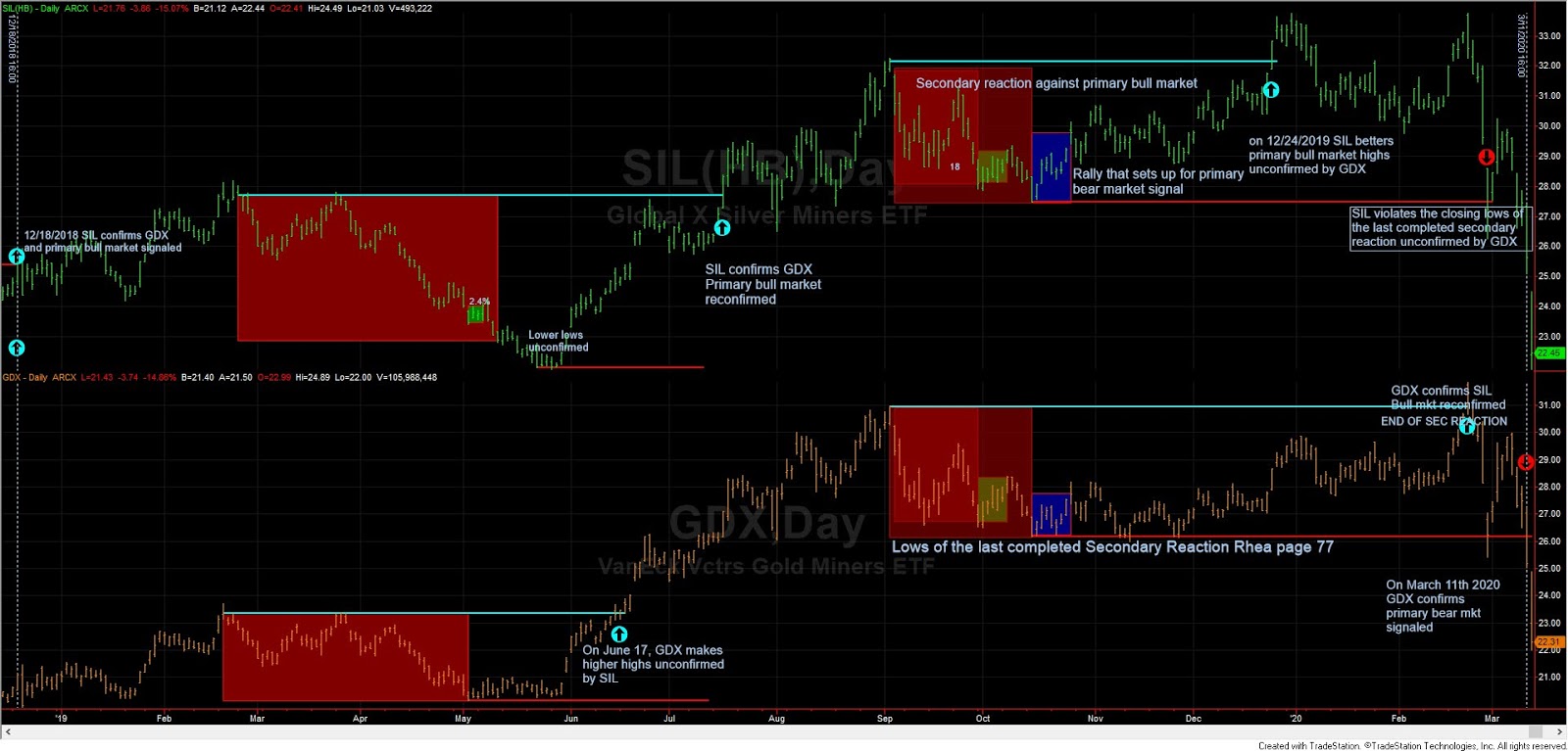 under the Classical Dow Theory), unconfirmed by GDX. On March 11th, 2020 GDX confirmed, and, thus, we got a primary bear market signal.