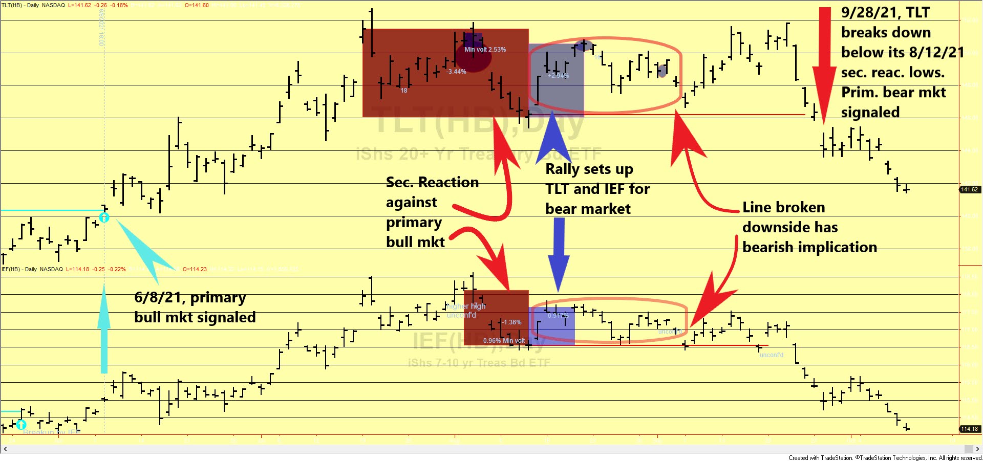 All in all, on 9/28/21, TLT, by confirming IEF signaled a primary bear market.