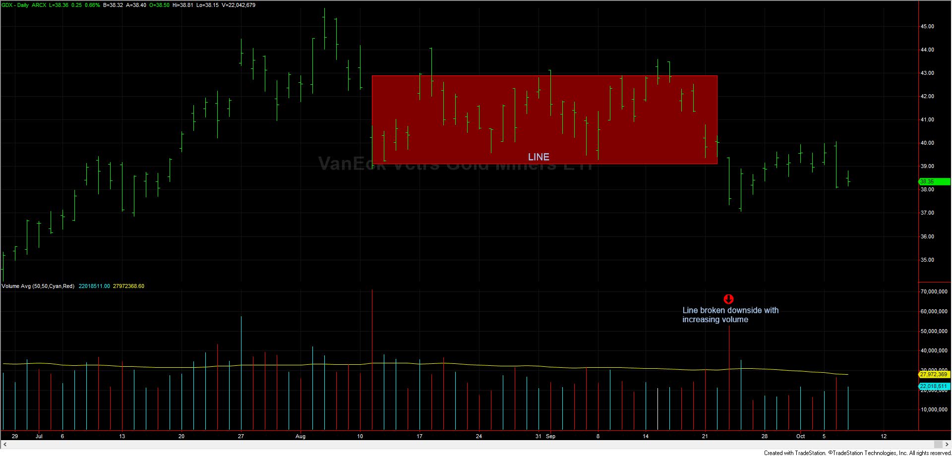 | GDX formed a “line”. The line was broken down on high volume too |