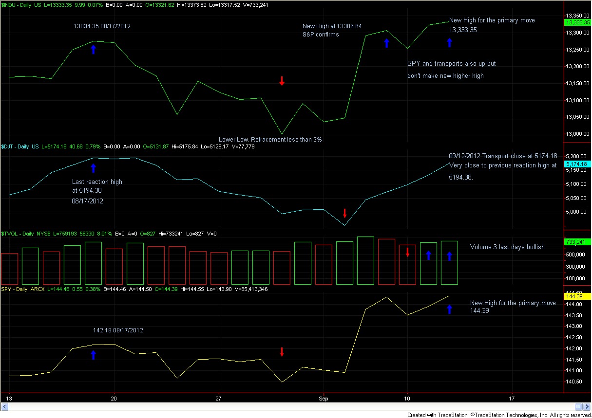 | New Higher highs confirm both the primary and secondary trend under Dow Theory. Keep an eye on the Transports |
